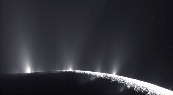 The internal heating and constant stresses on the icy shell causes some of the liquid water to erupt to the surface of the moon, like opening the cap of a soda bottle. Huge quantities of water vapor are lost to space, creating the moon's trademark plumes. If there's any extraterrestrial biology in that water, it's being vented to space also.